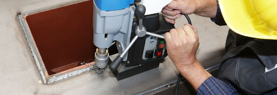 介紹:德國制造,MAB 525旋轉底座磁芯鉆孔機 - 在裝配和車間必不可少。多功能,堅固耐用。旋轉底座更易于定位。強大可靠的14.5安培雙絕緣電機,19英寸高,35磅,高速,雙速油浴變速箱,非常適合環形切割機和麻花鉆,專為連續使用而設計,智能電子扭矩控制,鉆至2-1 / 2“直徑。最多可達15/16“直徑。使用環形切割器,直徑為1”的Twist鉆孔,攻絲能力15/16“,集成切削油槽,自動內部潤滑。