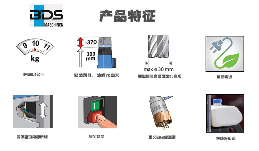 介紹:我們的輕型磁力鉆孔機(jī)MAB 100K的下一代型號(hào)現(xiàn)在配有KEYLESS鉆夾頭。無(wú)鑰匙鉆夾頭是一種快速簡(jiǎn)便的方法,可將環(huán)形刀具連接到Weldon刀桿上,無(wú)需任何螺釘。輕巧的MAB 100K磁力鉆床僅為9.9 Kg。重量輕,配有19毫米Weldon無(wú)鑰匙心軸,完全內(nèi)部布線等等。輕型磁力鉆床MAB 100K的優(yōu)勢(shì)在于它是一個(gè)理想的機(jī)器,可以在偏遠(yuǎn)的位置,塔架,橋梁,PEB結(jié)構(gòu)等進(jìn)行鉆孔,因?yàn)樗闹亓孔钶p。 MAB 100K磁力鉆床在德國(guó)制造,并提供國(guó)際保修。